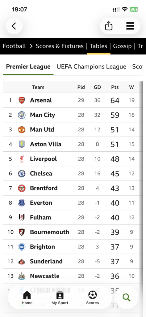 Just so their position is taken for granted. A fortunate three points yesterday but still able to enjoy the placing- tucked in behind the leaders.