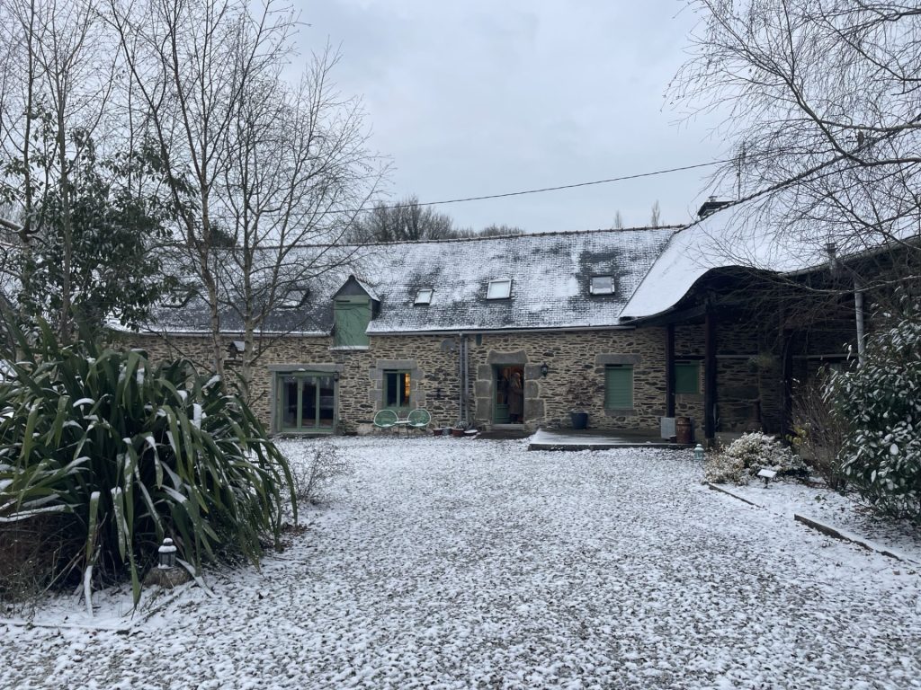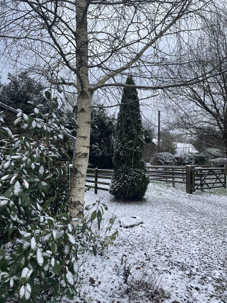 So we awoke with a snow lined vista. It is chilly and the heat pump is doing its job.