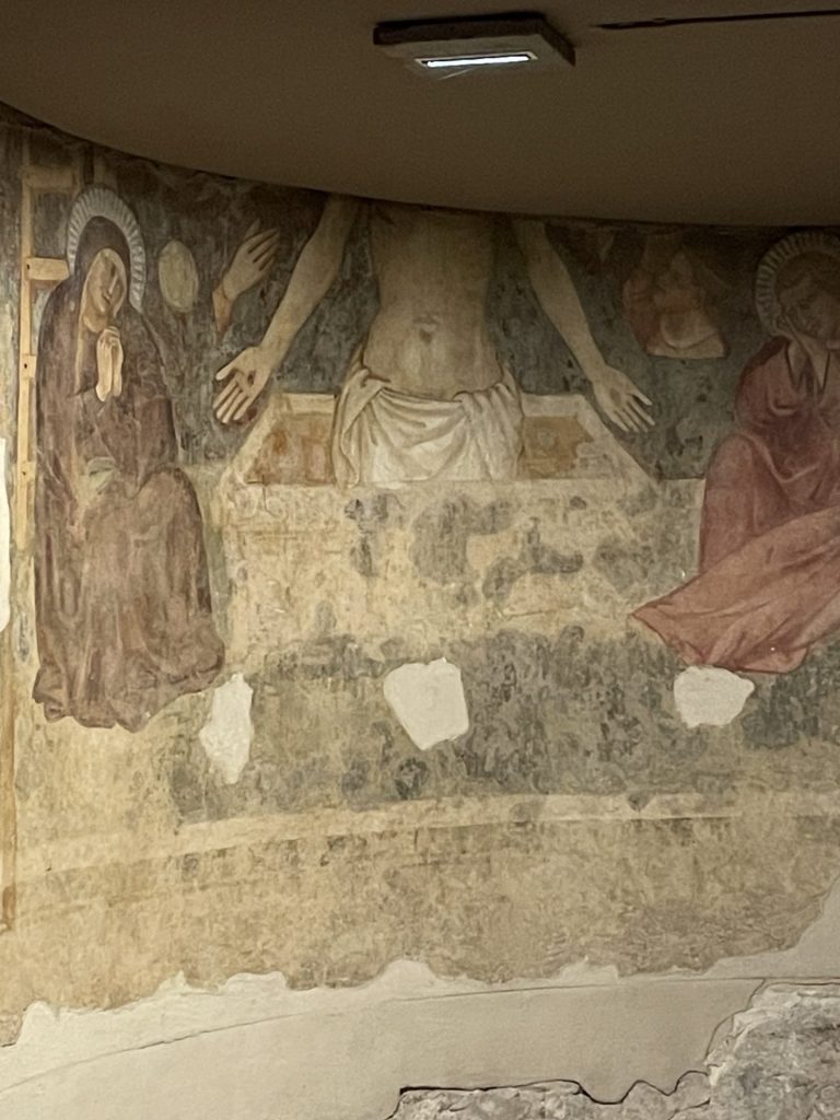 The visit to the crypt was very interesting. As ever not easy to piece together the timeline of the changes but still good. Great mosaics and a partial fresco from the mid 14th century.